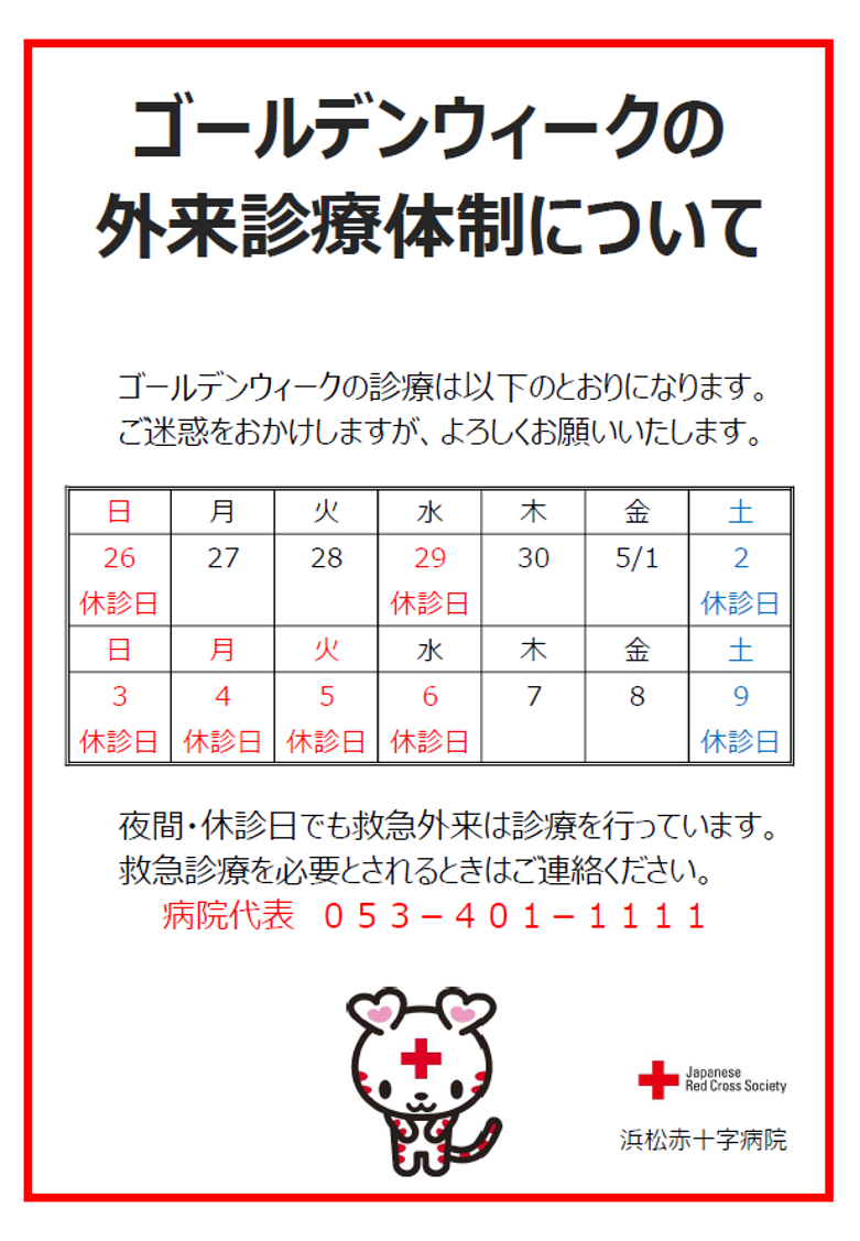 - ゴールデンウィークの外来診療体制について