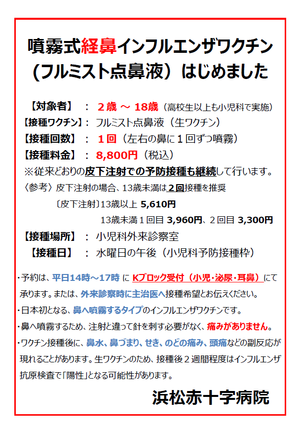 ホーム >  ご利用案内 >  噴霧式経鼻インフルエンザワクチンはじめました